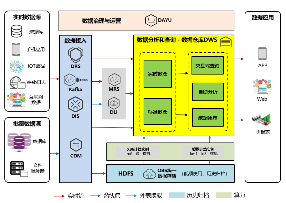 交通银行数据仓库(DWS)在核心技术上跟传统数据库相比有巨大优势,可以解决数据处理性能问题,为超大规模数据管理给予高性价比的通用计算平台,用于支撑各类数据仓库系统、BI(Business Intelligence)系统和决策支持系统,统一为上层应用的决策分析等给予服务,其具体应用于以下场景: